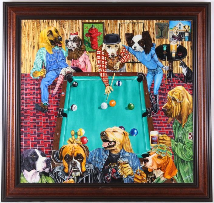 2022 Arthur Sarnoff Dogs Playing Pool 2 Home Decor Handpainted Hd